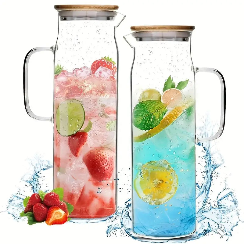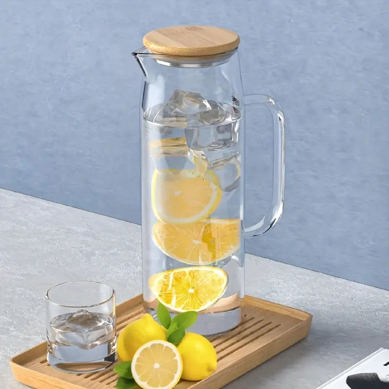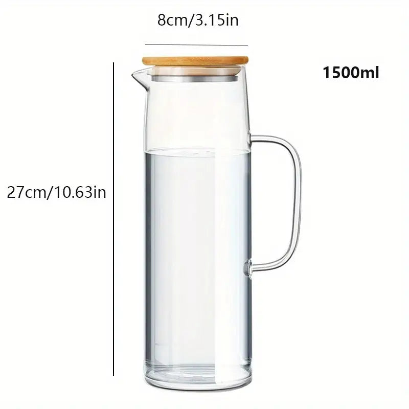 1500 ml, botella de seguridad para estufa de alta resistencia al calor, duradera y resistente al calor para agua caliente/fría, jugo, té helado, batidos, café - Ideal para el hogar, la oficina, la cocina, el restaurante, contenedor de bebidas para la oficina, tapa de bambú natural, vidrio resistente al calor.