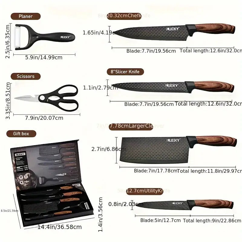 Cuchillos y tijeras de cocina forjados, cuchillo para pelar frutas, cuchillo para pelar verduras, juego de cocina en caja de regalo, adecuado para lugares: cocinas caseras, hoteles, restaurantes, regalos. Color: y marrón. Cuchillo de Cocina Leqi-Patrón Diamante-Mango Marrón y - Juego Encajonado de 6/5 Antiguos
